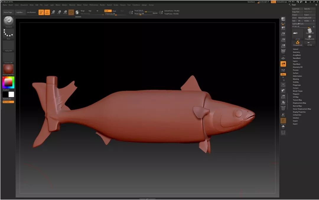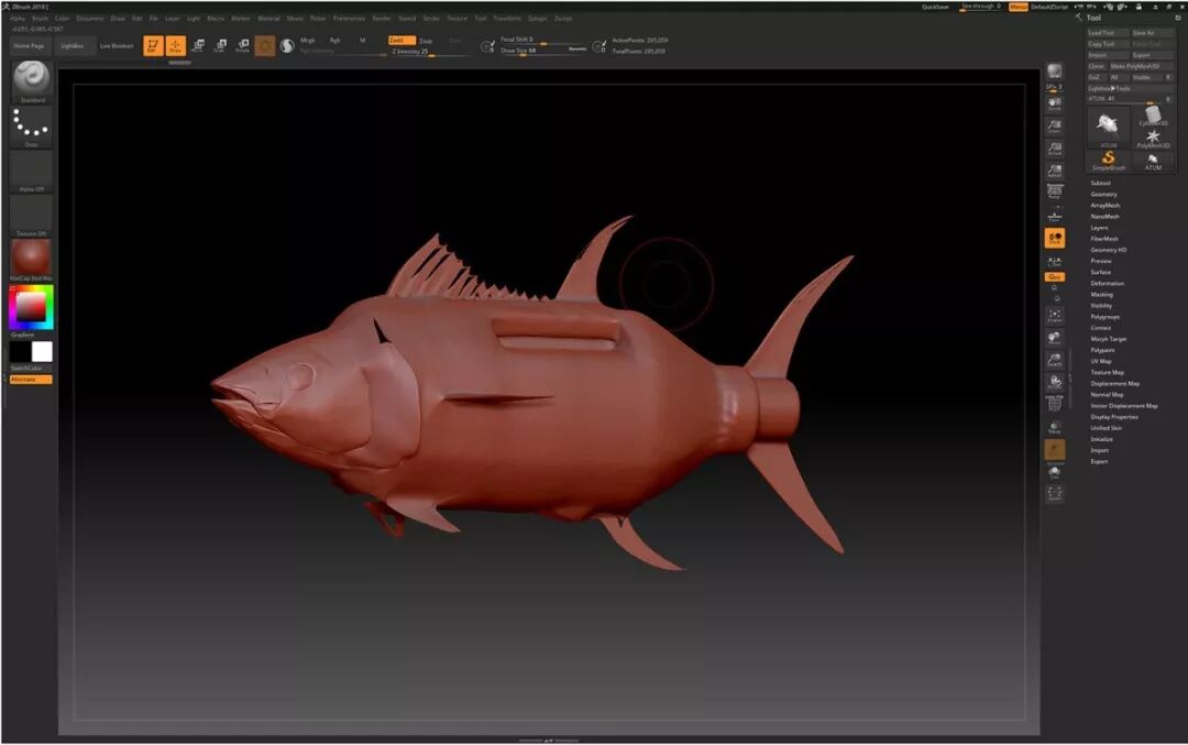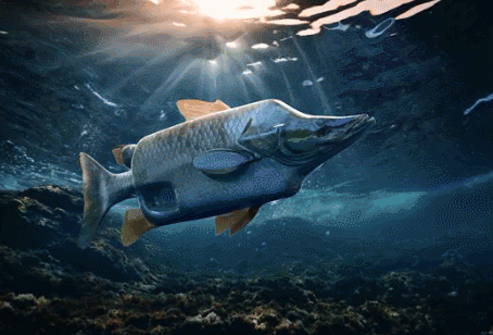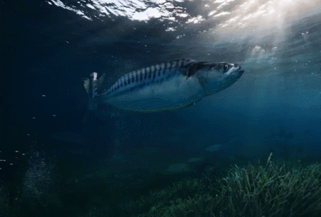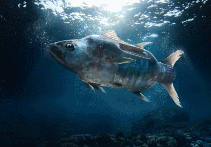 海洋背景是真实的,然后加入3D建好的模型,再用PS给鱼加上真实的细节:
