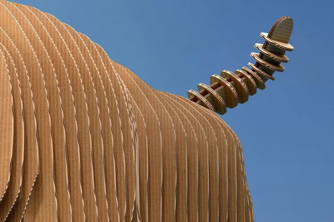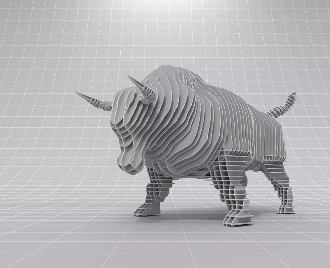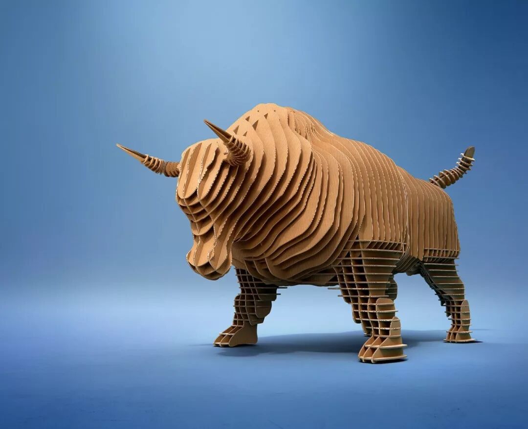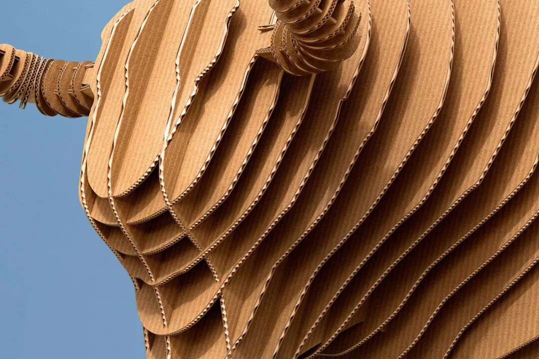 从模型看,就是由片片构成的一个牛的造型,而实际上是要做成硬纸箱的那种质感,在每一片的断面,都有瓦楞纸特有的那种形状。