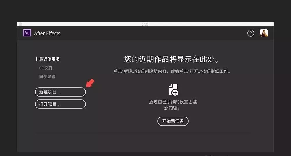 打开AE新建一个项目