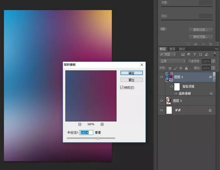 海报图片放在人物图片上一层,对海报进行滤镜——高斯模糊