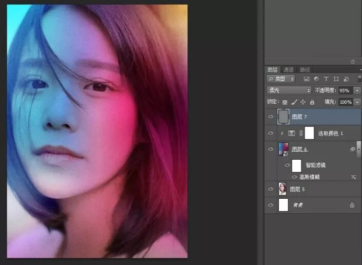 添加后,给混合模式选个柔光,便会融入到图片中,调整透明度让杂点不突兀。