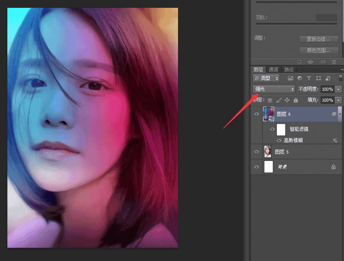 继续调整混合模式为:强光,人物和色彩便融入在一起了