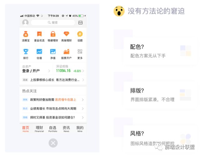 情绪板实操过程中,我们模拟一款金融理财服务的产品。在这次改版中,改版目标是希望突显产品专业、及时、全面、权威的品牌调性,同时匹配出符合产品调性的用色和视觉风格的设计,以满足金融产品的目标用户对投资收益、资金安全、周转灵活的心理诉求。