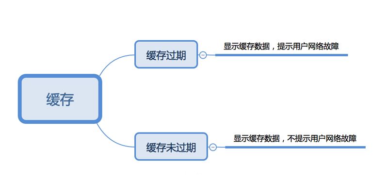 当然我们需要给缓存数据设置一个有效期,如果过了那个有效期,网络还是没有恢复正常,应该及时提示用户网络故障。