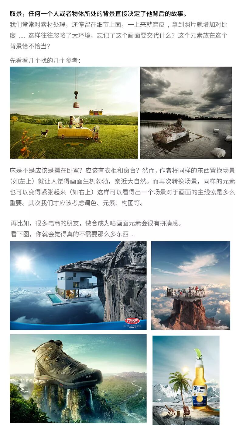 是否觉得做合成打开PS之后无处下手,做完之后总觉得缺少故事情节?这一次分享的5个要点,是个人觉得需要重视的,每一点都有一个案例来让作品变得多一份惊喜。(申明:文中素材均来自网络,这里仅作分享交流作用)