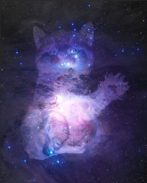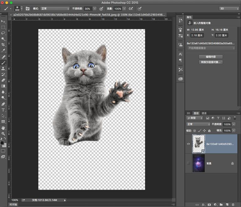 2、置入提供的小帅猫,右键小帅猫图层栅格化,然后我们隐藏背景星空。