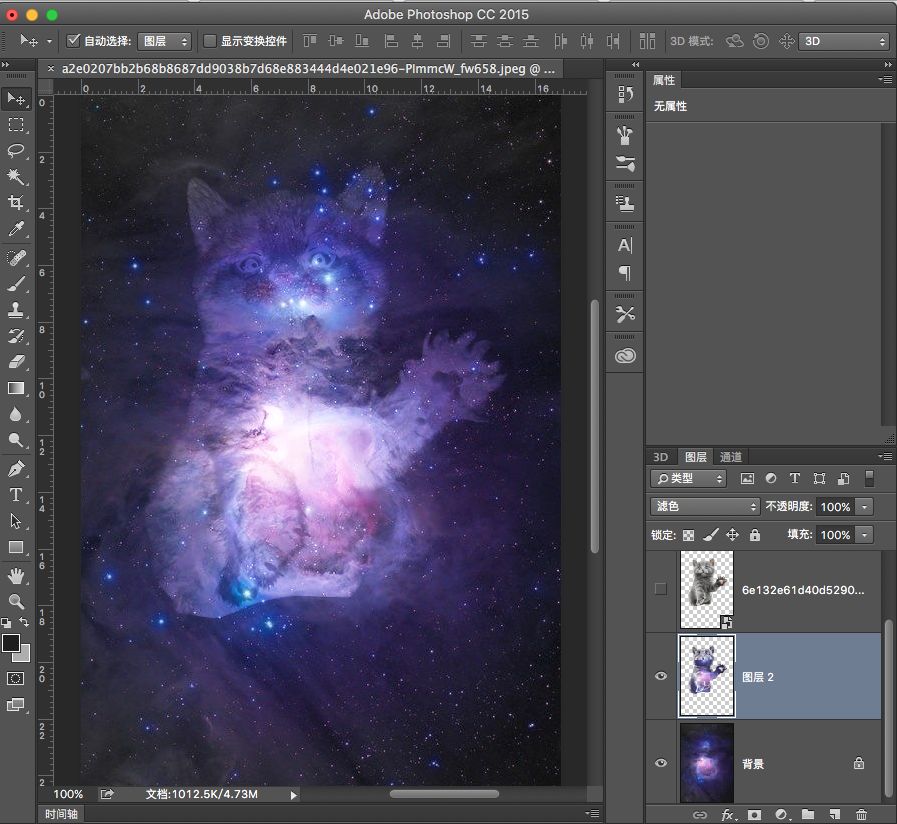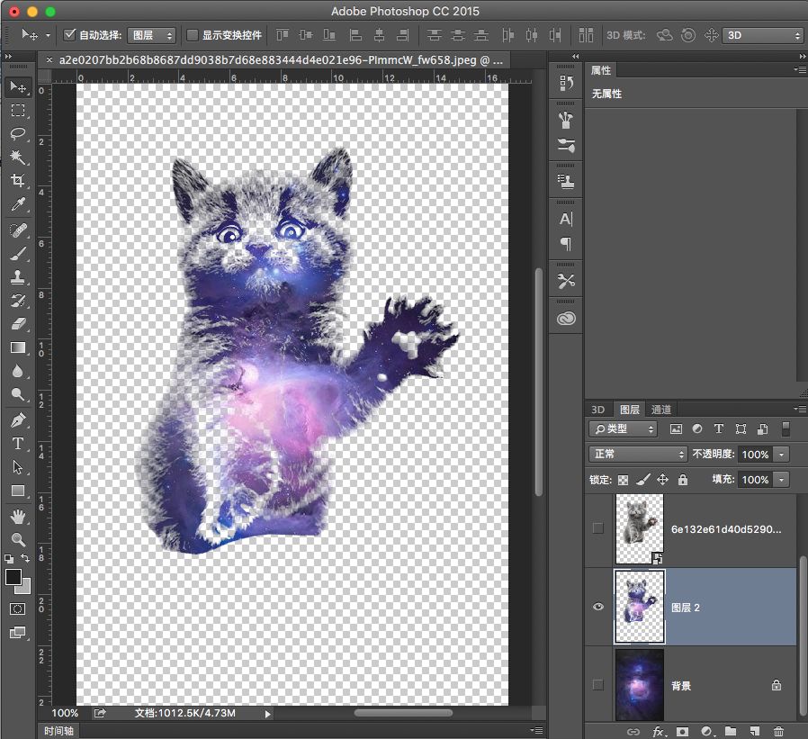 6、点击RGB,回到图层,选中星空图层,反向选区(ctrl+shift+i),然后ctrl+J 复制选区中的图层,小猫造型就出来了
