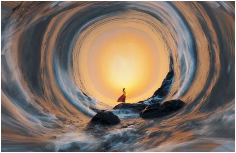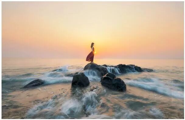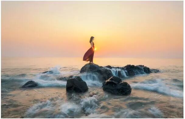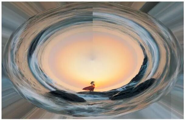 8、一般适合做成小星球的图如下图结构为:人物视角持平,视觉中心有亮点,有延伸状前景,前景中细节有特点(海浪岩石的交织、或具有动感视觉冲击等),但是还是得自己多多尝试,尝试是否适合此类特效。