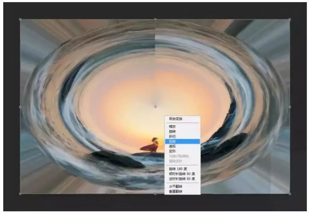 6、Ctrl+T,右键图片,扭曲,通过拉动不同部位的变形,实现小星球效果。