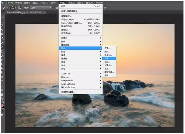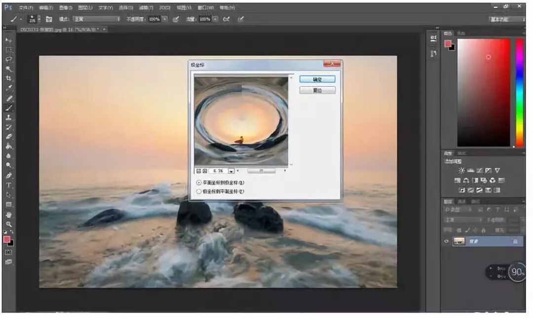5、接下来就是重头戏,PS制造小星球特效,原理是极坐标+扭曲。点击滤镜,扭曲,极坐标。
