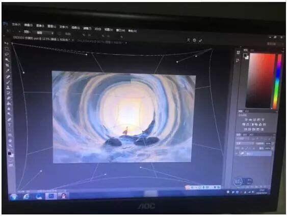 因为当时我做的时候电脑太卡,害怕突然死机,所以不敢蠢蠢欲动去截图。但是我很机智地拍了下来,就本图而言,我是这样拉扭曲的