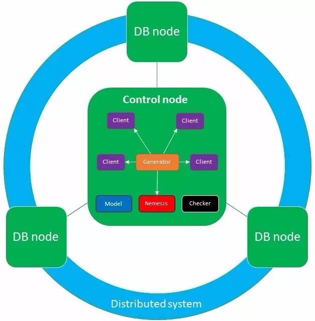 Jepsen构造随机的操作,将其应用于系统,包括正常的访问系统操作、错误注入操作。并发的操作结果将记在历史记录中,历史记录将按照事先定义好的模型分析其正确性。生成式的随机测试通常显示边缘的情况与巧妙的输入组合下的结果。