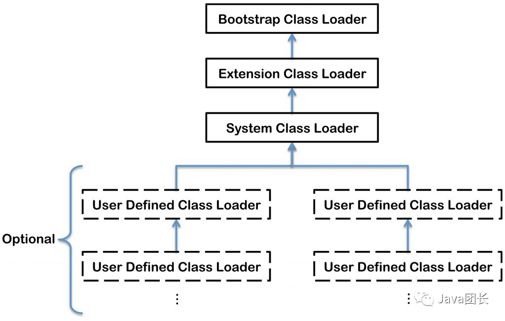 JVM 中有多个类加载器,分饰不同的角色。每个类加载器由它的父加载器加载。bootstrap 加载器除外,它是所有最顶层的类加载器。