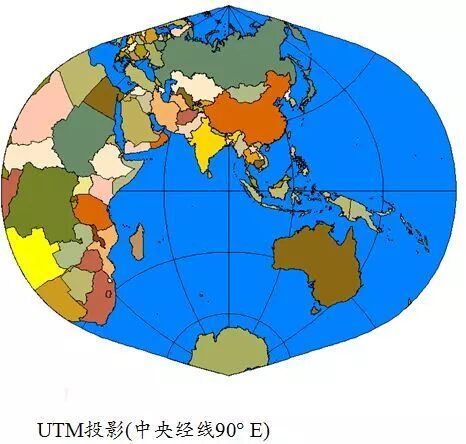 在采用横向麦卡托投影的时候,世界各地各国都会采用不同的基准线,这也就形成了一套制图领域很重要的UTM系统(全球横向麦卡托投影系统)。