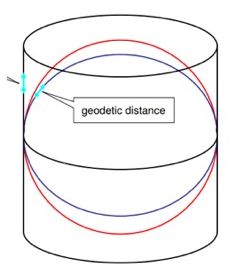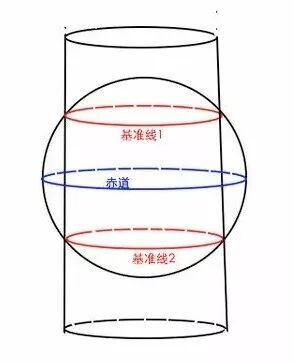 它的基准线则是一对形成大圆的经线(完全相对的两条经线)。如图所示: