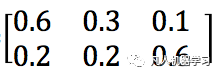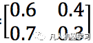 ,具体的含义是高兴-》不高兴的概率P(不高兴|高兴)=0.4,高兴-》高兴的概率是P(高兴|高兴)=0.6,不高兴-》高兴的概率P(高兴|不高兴)=0.7,不高兴-》不高兴的概率P(不高兴|不高兴)=0.3。