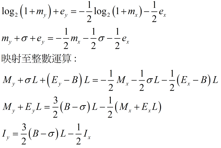 圖 8. 用整數運算式表達近似反平方根運算