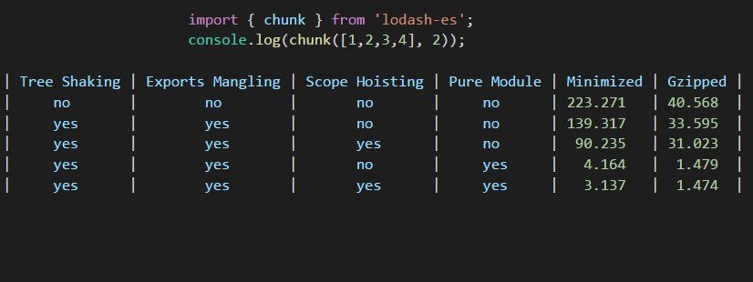webpack4在 ESM tree shaking上做了极大优化,使得在引用工具库时候真正做到"按需打包",这要求无论是自己开发的工具库,抑或使用第三方工具库,打包&使用 ESM 版本非常必要。