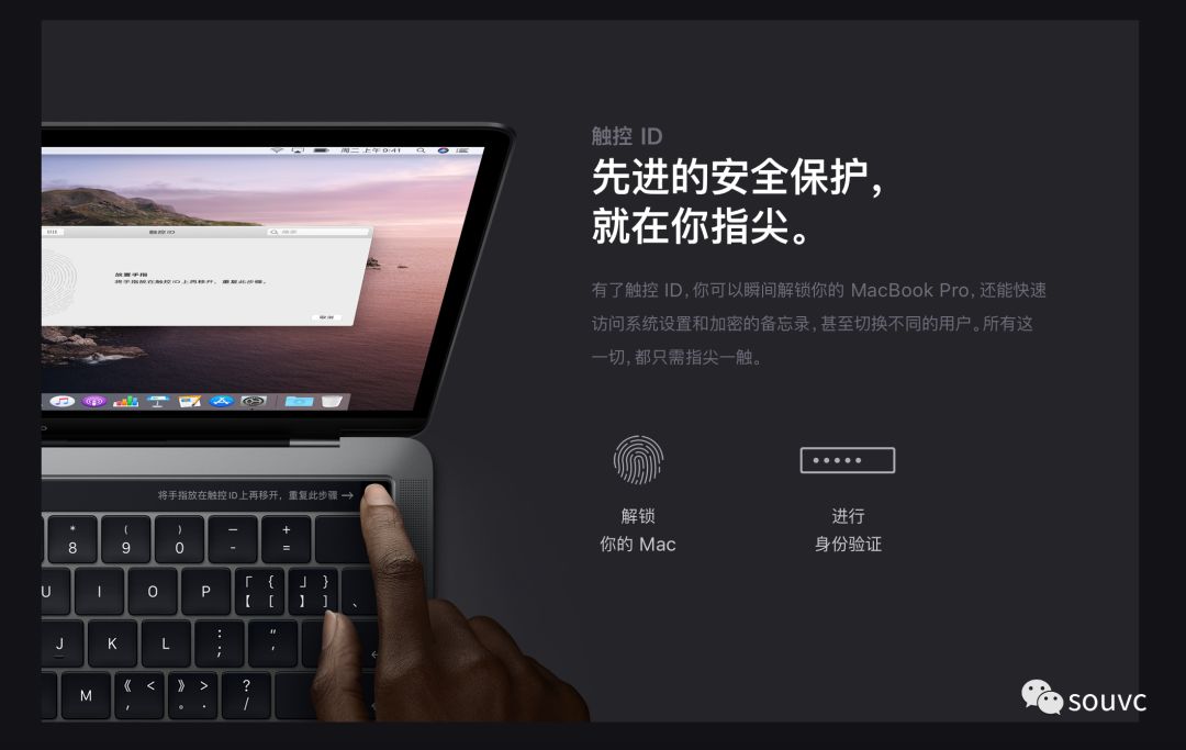 布局方面;MacBook Pro 配备触控栏,它取代了以往键盘最上方的功能键,并且更多功能、更实用。