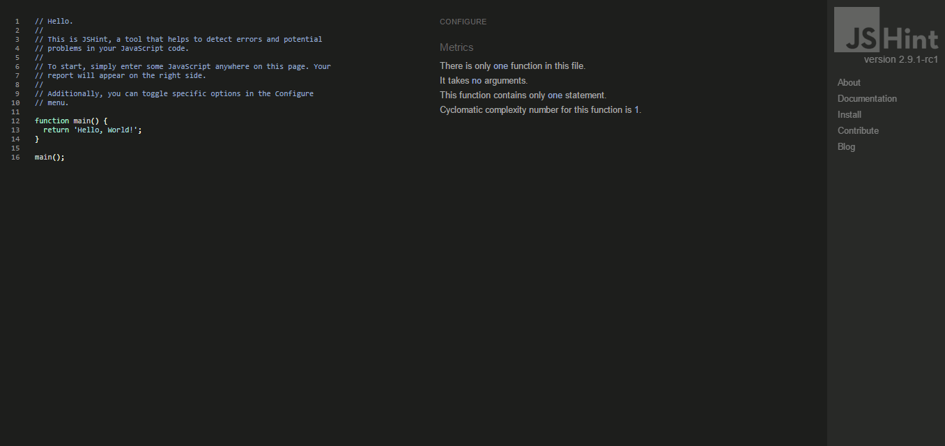 JS hint 是一个由社区推动的工具。它可以检测JavaScript代码中的错误,提示你代码中有哪些潜在的问题并且还能够让你与团队的编码习惯保持一致。另外值得一提的是,它还可以很容易地适应特定的编码规则或环境。