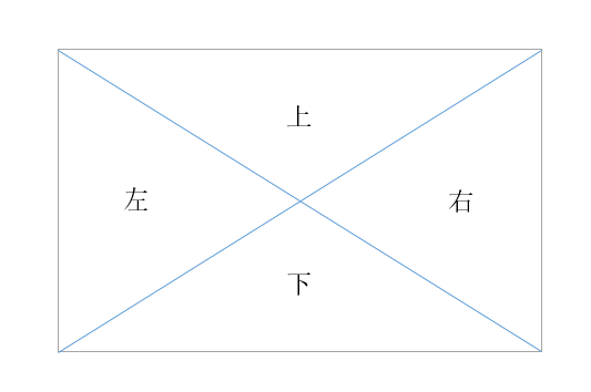 只要能判断出鼠标移入移出时属于哪个部分的范围内,问题即可解决。而这个判断可通过斜率,结合鼠标的位置与元素框中心点的位置比较得出。这个判断原理,采用下面的坐标系图解来说明。