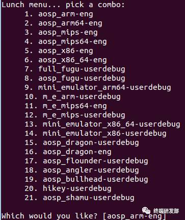 cd aosp #初始化命令工具 source build/envsetup.sh #选择编译的源码的版本,参考上一篇文章 lunch