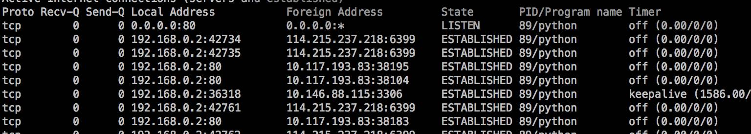 [回答]: 由于原因#4和#3所以导致整个IOLoop慢了,进而因为#2 导致很多请求堆积,也就是说很多请求在被真正处理前已经在backlog里等了一会了。导致了SLB这端的链接批量的超时,同时又由于close_wait状态不会自动消失,导致最终无法再这个端口上创建新的链接引起了停止服务