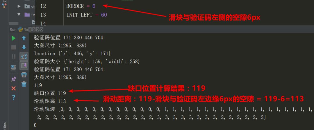 每次运行程序,位置固定不变,滑块左边界离验证码图片左边界有6px的距离