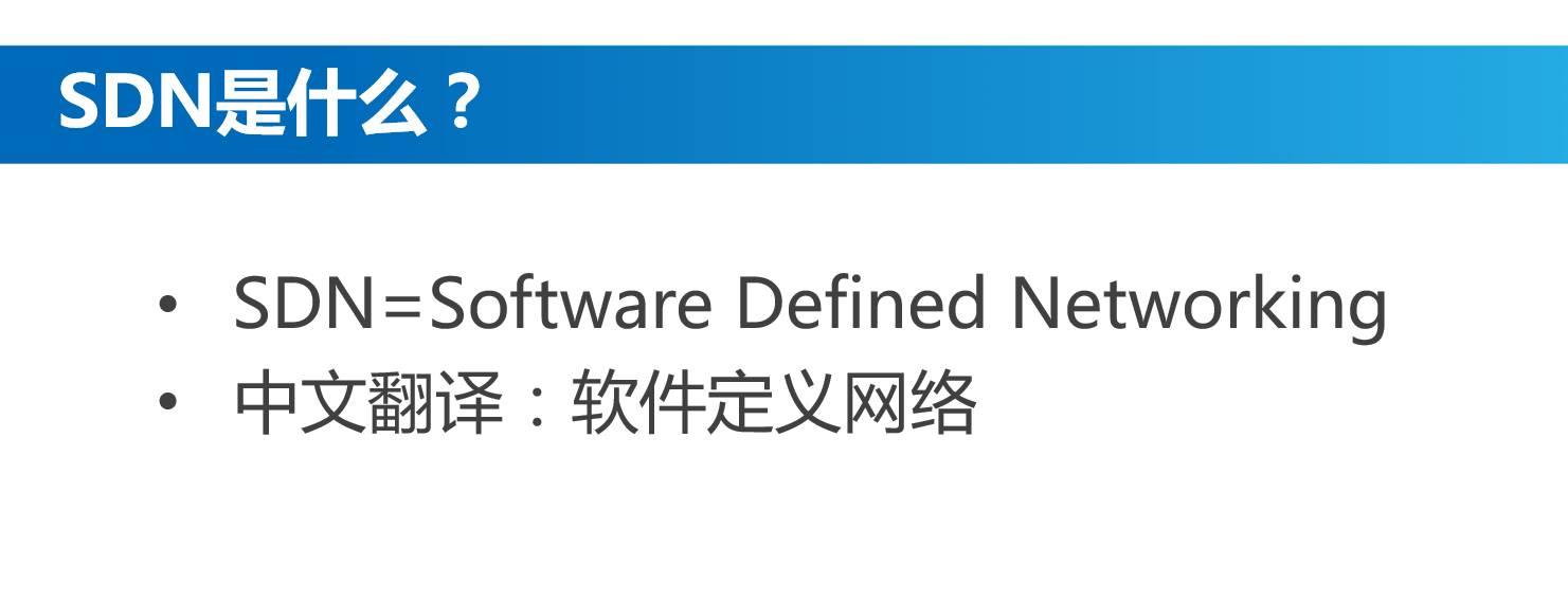 简单来说,就是把现在复杂的传统网络设备全部对上层应用不可见。上层管理层,只需要像配置软件程序一样,对网络进行简单的部署,就能够让网络实现所需要的功能。不再需要和以前一样,一个一个去配置网络上所有节点的网络设备。