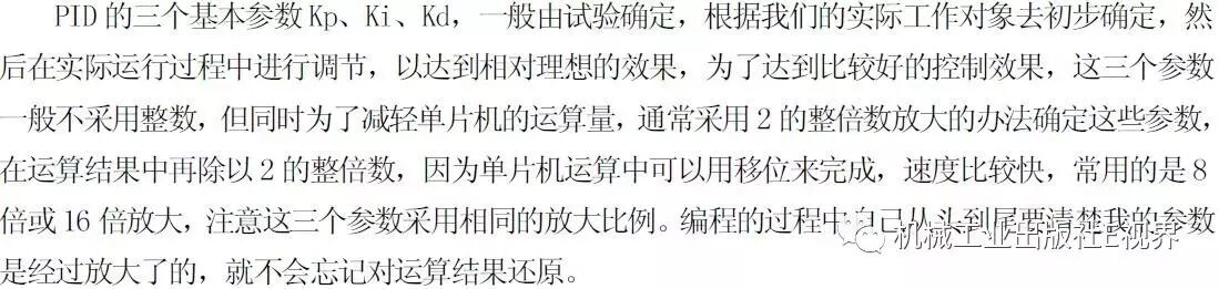 这是PID最困难的部分,编程时只设定他们的大概数值,然后通过反复的调试才能找到相对比较理想的参数值。面向不同的控制对象参数都不同,所以我们无法提供参考数值,但是我们可以根据这些参数在整个PID过程中的作用原理,来讨论我们的对策。