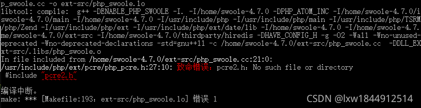 1.cygwin 安装swoole 报错致命错误:pcre2.h:No such file or directory