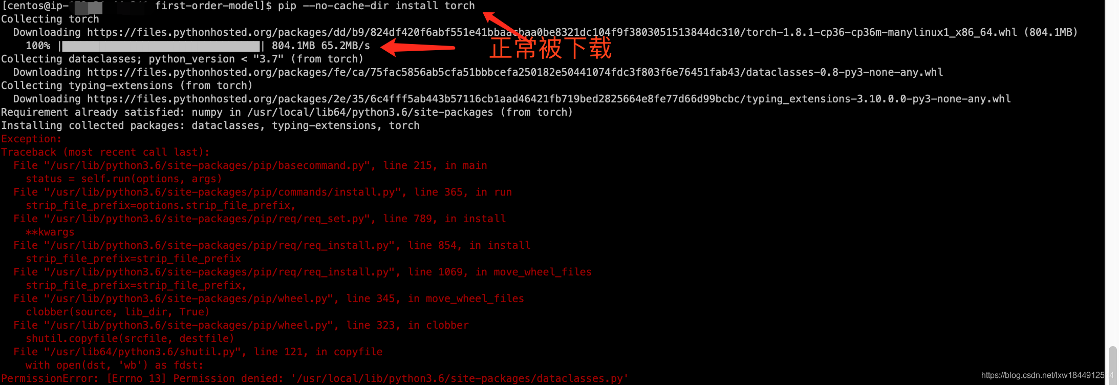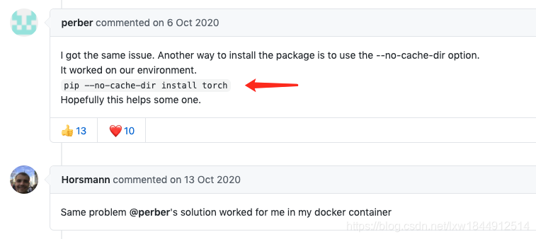 pip --no-cache-dir install torch # 不带缓存文件,这个有帮助的
