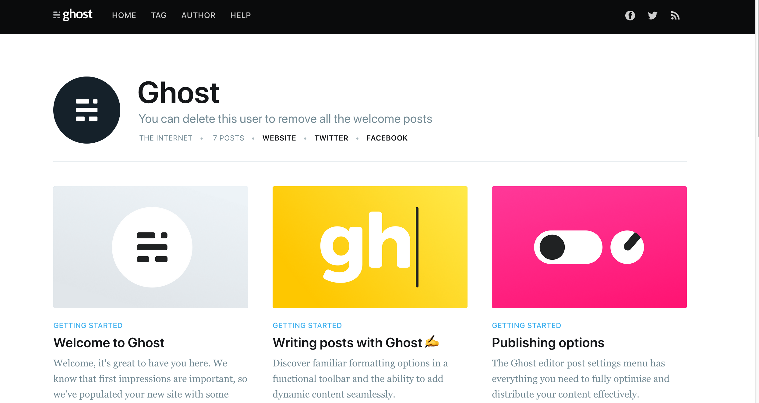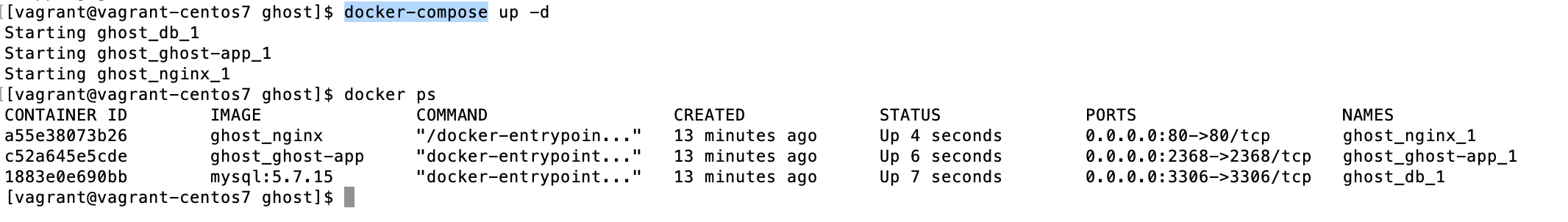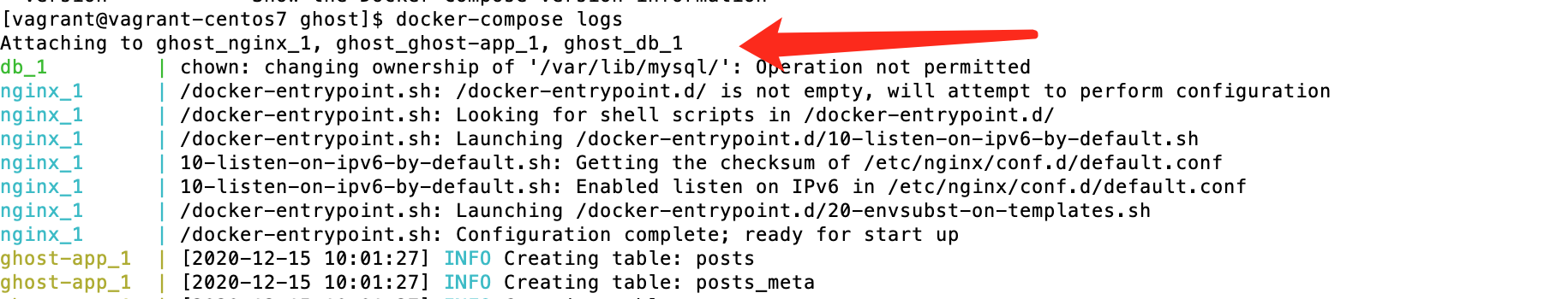 - docker-compose ps // 查看容器 网站首页: http://localhost:80/ 或 http://localhost:2368/