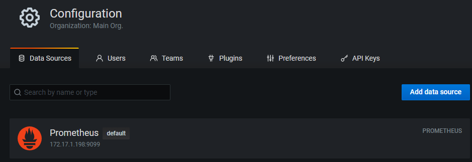 安装完之后,就可以使用grafana了,Grafana需要能获取到prometheus的数据,所以需要配置数据源data sources:
