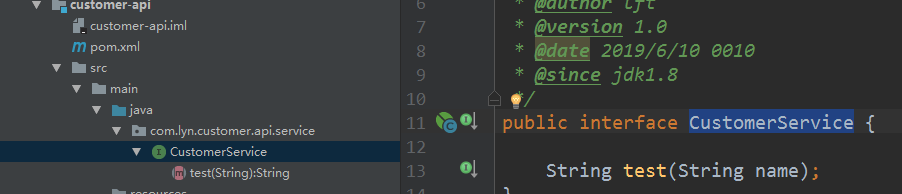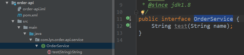 然后在这四个提供者的业务接口***-api里写service接口服务。并且每个模块下的***Service里都写一个相同的方法:test(String name)。