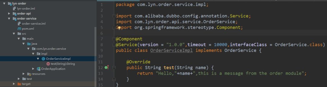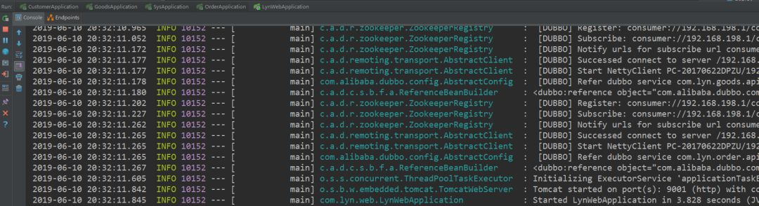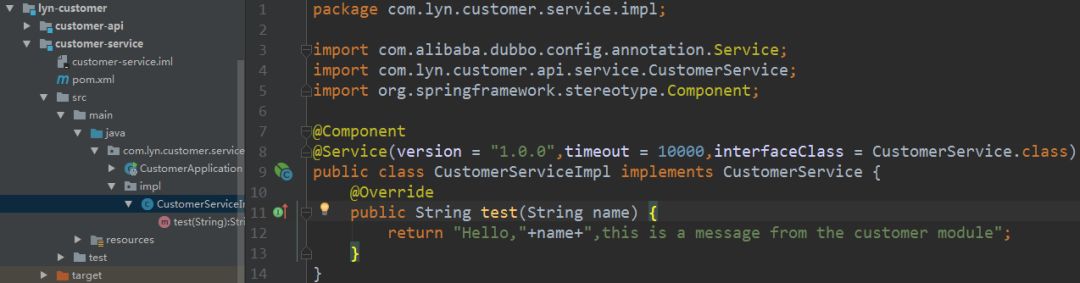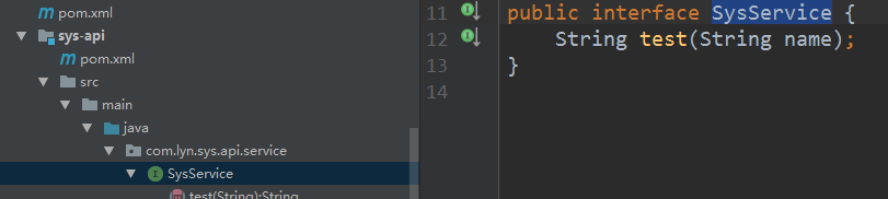 以上面相同的方式为lyn-sys,lyn-customer,lyn-order三个模块创建服务接口***-api和服务实现***-service。