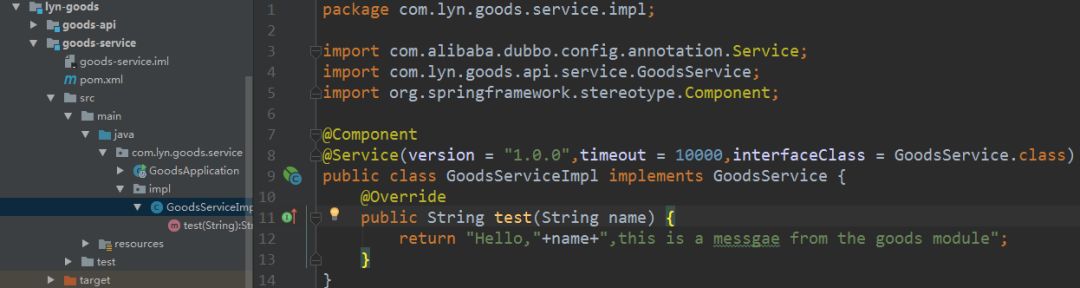 现在,我们以商品服务模块lyn-goods为例创建并实现提供者。