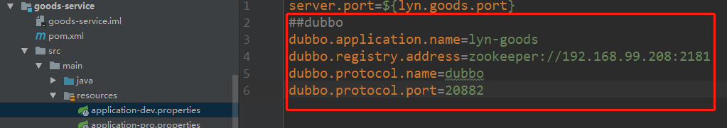 添加提供者配置信息。需要注意点:dubbo.applicaiton.name可以以模块命名,dubbo.protocol.port从20880递增,每个提供者的这个值不可重复。