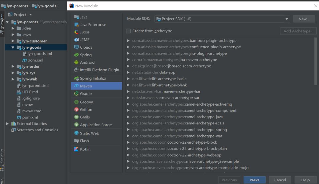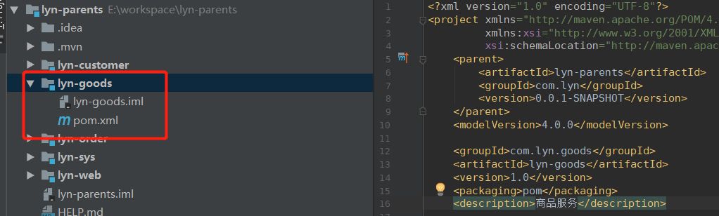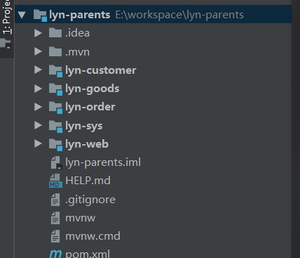 昨天已经搭建好了SpringBoot基于Maven的基础父子级项目,今天开始进入项目分模块及分布式实现。首先我们基于昨天的项目,在父级工程下建lyn-sys,lyn-customer,lyn-goods,lyn-order四个西模块。