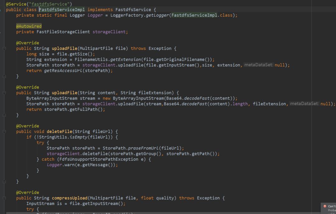 分布式文件服务已经实现,接下来你就可以上传文件实现你的业务代码了。那么文件的路径在数据库怎么存储呢?实际这个有经验的开发者基本都知道,文件路径存入数据库时要去掉域名,在接口查询出来又需要补全域名。为什么这样做呢?在我们的生产环境,一般文件肯定是带域名访问,比如我配的是http域名,但使用小程序后,分享时图片无法使用(不支持http域名下载),必须要用https才可正常使用,那我是不是得改文件访问域名呢。如果你把带域名的文件路径存到了数据库,那么是不是查出来的路劲无法访问了。所以,存储时去域名查询加域名这看似麻烦的操作,但在实际项目中更有利于日过的扩展和维护。编写的文件工具类: