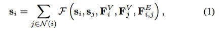 其中 F(·) 是待学习的参数函数。得到 s_i 以后,使用另一个参数函数 O(·) 获取最终输出: