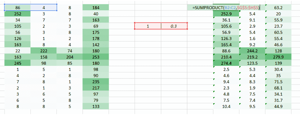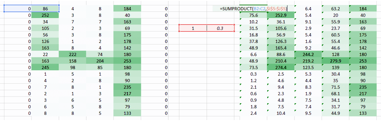 (1,0.3) 的权重值给了我们一个输出表格