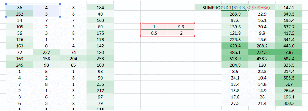 同时表格 (0.1,5) 的权重值也将给我们一个输出表格。
