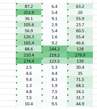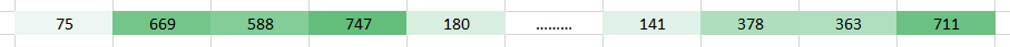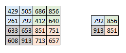 基本上,机器会把图像打碎成像素矩阵,存储每个表示位置像素的颜色码。在下图的表示中,数值 1 是白色,256 是最深的绿色(为了简化,我们示例限制到了一种颜色)。