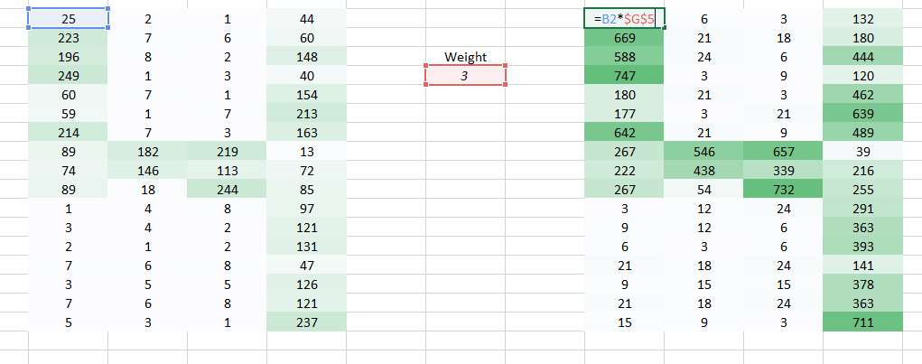 这里我们使用一个权重乘以初始像素值。
