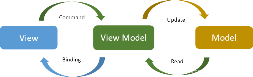 View通过DataContext(上下文)来绑定对应的ViewModel,原则上,一个View对应一个ViewModel(一个ViewModel可以绑定多个View).绑定完成后,界面控件可通过绑定的属性进行交互。