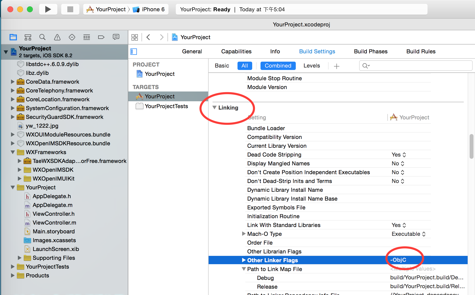 Target->Linking->Other Linker Flags中添加-ObjC选项,以保证这些Category能够正常工作。不知道如何修改编译选项?请参考:如何修改编译选项注意:请注意