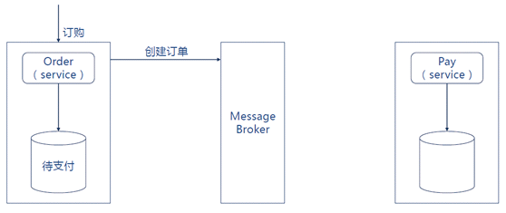 下图展现如何使用事件驱动方法,在创建订单时触发支付业务的数据更新,微服务之间通过消息代理(Messsage Broker)来交换事件。
