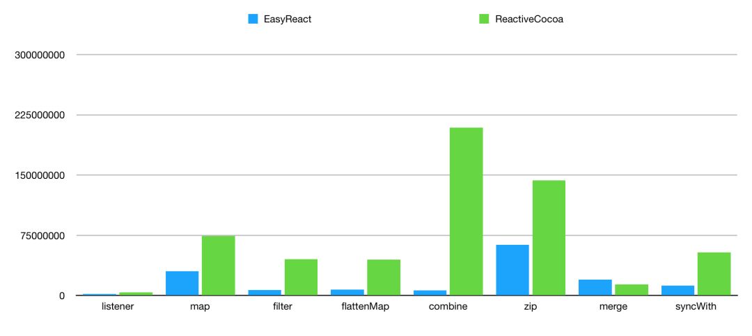 EasyReact 的 Swift 版本即将开源,届时会和 RxSwift 进行 Benchmark 比较。