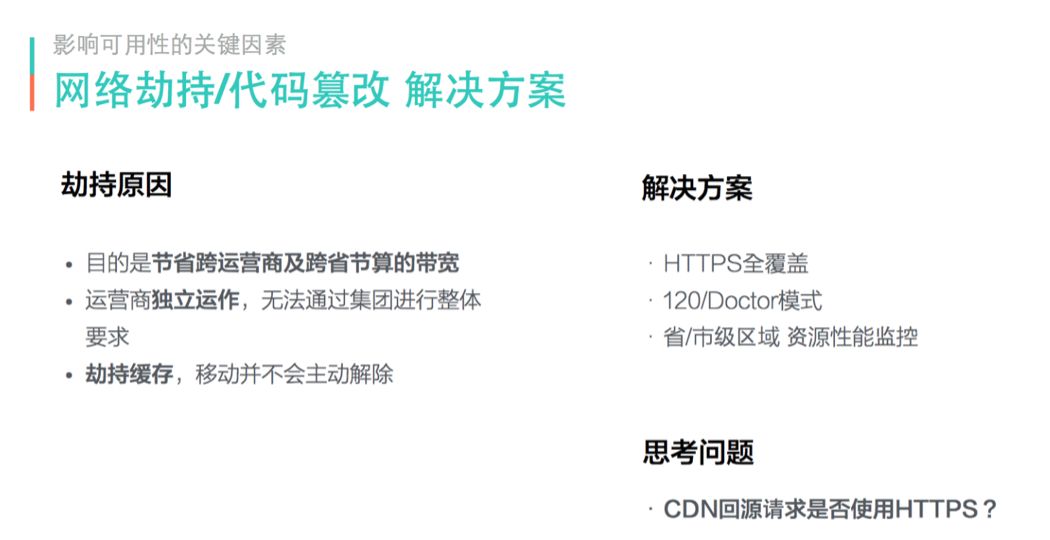 第二个问题,大家都比较头疼。因为运营商是以省为单位运营的,所以在跨省的资源请求上会造成额外的流量,基于这个问题,每一个省级运营商都会想办法节省流量,对于流量大的资源有可能会进行劫持甚至篡改。